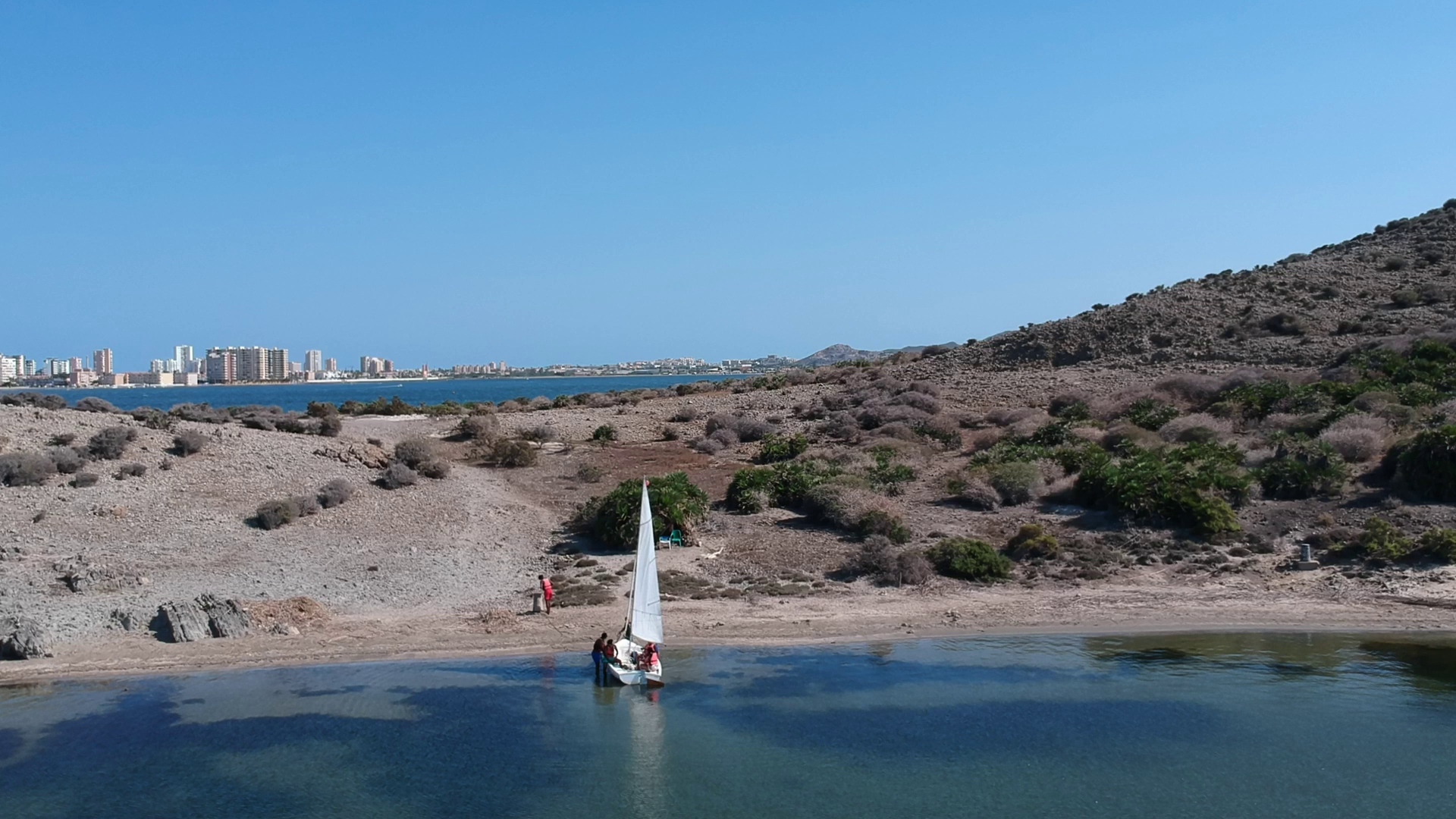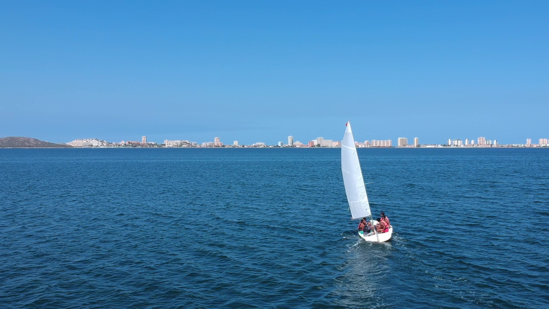 Vela ligera, paseo 2 horas, hasta 6 personas + el monitor de una embarcación a vela ligera de 5 metros de eslora, donde se enseñará a manejarla, visitando la Isla del Ciervo del Mar Menor