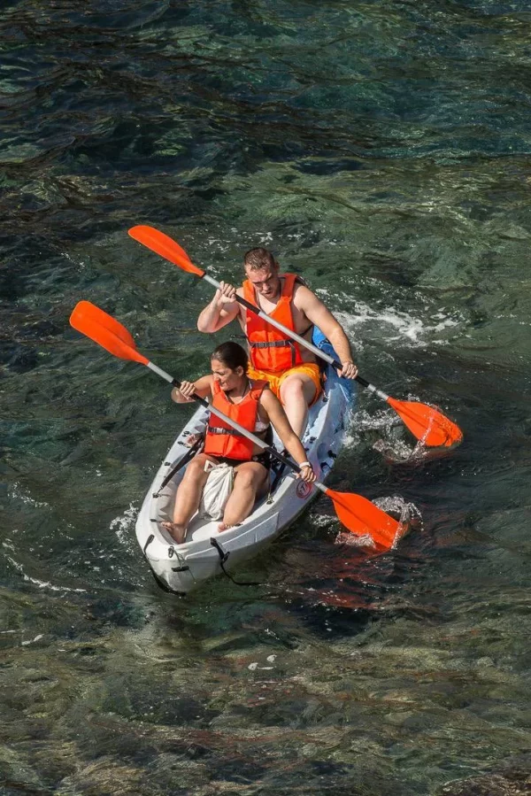 Realizaremos un tour en kayaks dobles por las tres islas de origen volcánico más pequeñas del Mar Menor. Podréis aprender al mismo tiempo que realizáis kayaks sobre el origen de La Manga, de Cabo de Palos y del Mar Menor, así como leyendas y curiosidades de la Islas del Barón. Además, podréis conocer sobre la fauna marina y ornitología que tenemos en un ecosistema que cambia constantemente. Casi al finalizar el tour podréis disfrutar de un baño en una de las islas y conocer más sobre lo que sucedió en la Región de Murcia hace 7 millones de años, para terminar con un reportaje fotográfico para llevaros un recurso de la experiencia.