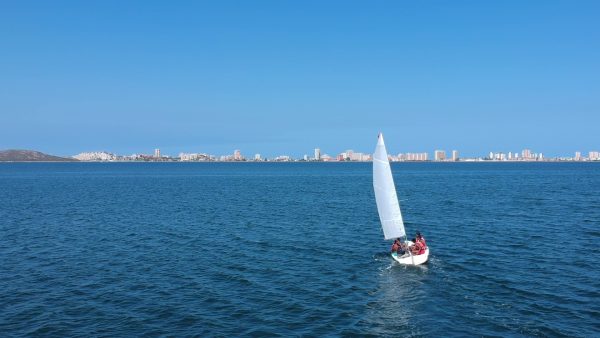 Vela ligera, paseo 2 horas, hasta 6 personas + el monitor de una embarcación a vela ligera de 5 metros de eslora, donde se enseñará a manejarla, visitando la Isla del Ciervo del Mar Menor